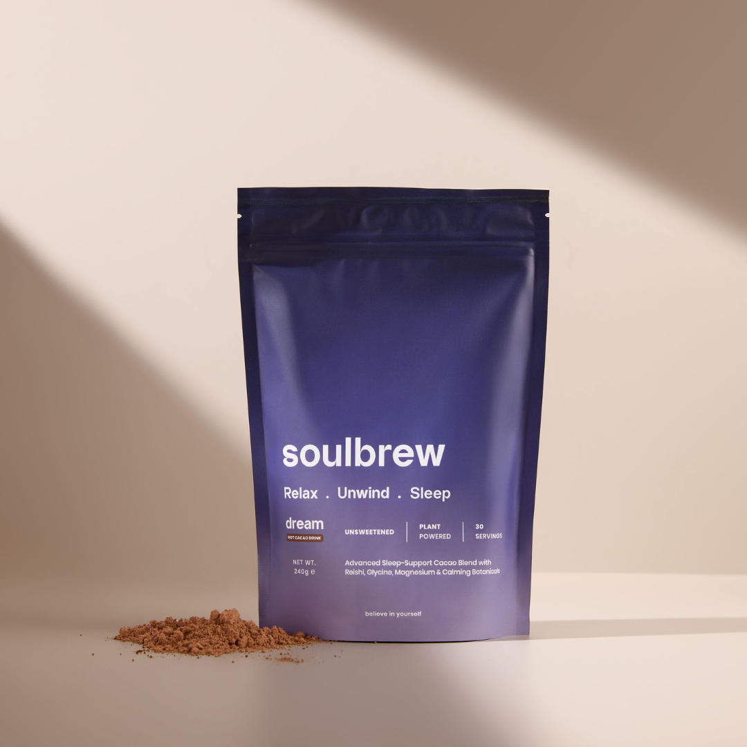 Drop us a lineSoulBrew Dream is crafted to help you unwind, de-stress, and ease into a beautifully calm evening routine. It blends magnesium bisglycinate, glycine, adaptogenic reishi, calming botanicals like chamomile and lemon balm, and a soothing hot cacao flavour to support relaxation after a long day. Together, these ingredients help quiet the mind, ease tension, and prepare your body for a restful night - turning your wind-down ritual into something you genuinely look forward to every night.